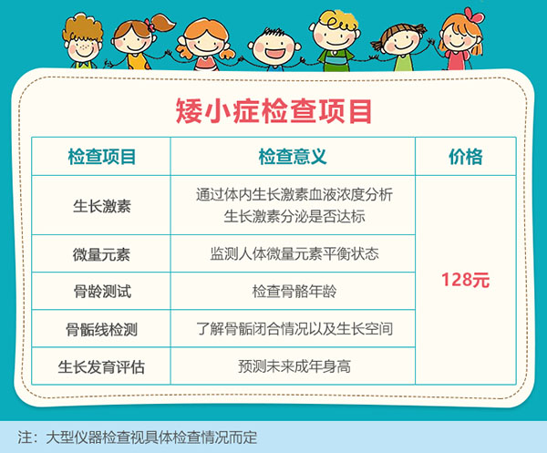 检查项目:生长激素,微量元素,骨龄测试,骨骺线检测,生长发育评估