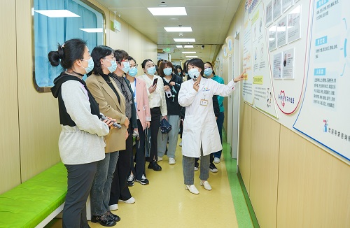 在医院行政院长高瑶、业务院长黄美琳的陪同下,胡主席一行先后深入走访了西南儿童医院“一城两院”高新院区门诊、康复训练、测评评估、物理治疗、中医治疗等特色诊疗科室,通过实地查看和老师们的交谈、孩子们的互动,详细了解各类特需儿童的康复治疗情况,以及医院“医教一体”多学科诊疗模式和ICF三级康复体系相结合的临床应用和成果,领导们对我院的特色儿童康复项目给予了充分肯定,对医院“儿童乐园”式就医环境和全病程管理的开展给予了一致好评。