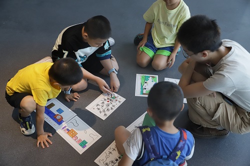 在活动现场,辅导老师与孩子们通过有趣的[抱圈圈]游戏,轻松破冰,熟悉彼此,并以此分组开始创作。