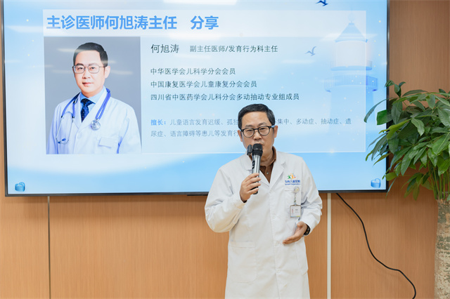 随后,主诊医生何旭涛主任也作出了分享,何主任强调了多动症早期干预治疗的重要性,并提醒在座的家长们,当发现孩子出现异常症状的时候,一定要及时关注,不要因为家长的“粗心”而耽误了最佳的治疗时机,最后还分享了一些关于多动症康复的建议。
