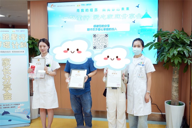 以爱之名,传递追高力量。爱心家庭的无私分享不仅为许多追高家庭带去了宝贵经验,也传递了追高信心,鼓励着他们在追高路上,坚持不懈。在三组爱心家庭分享结束过后,本次公益活动负责人池春丽部长为他们颁发了爱心证书和小礼物,感谢他们的无私分享。