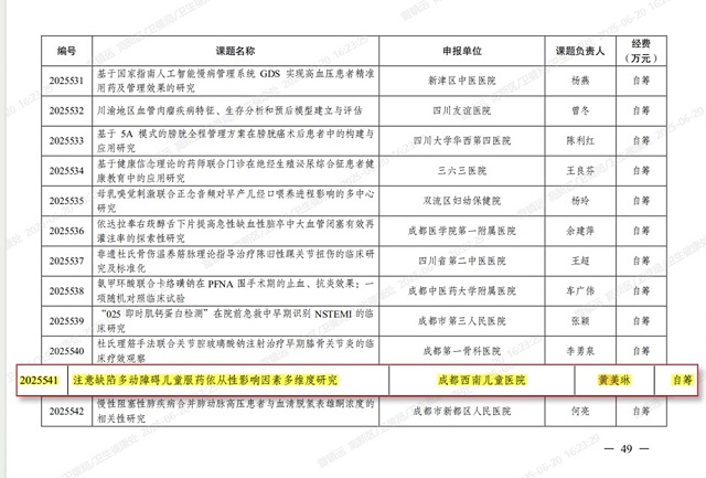 近日,成都市卫生健康委员会正式发布《关于下达2025年成都市医学科研课题立项项目的通知》(成卫健发〔2025〕32号)。西南儿童医院一城两院申报的4项聚焦...